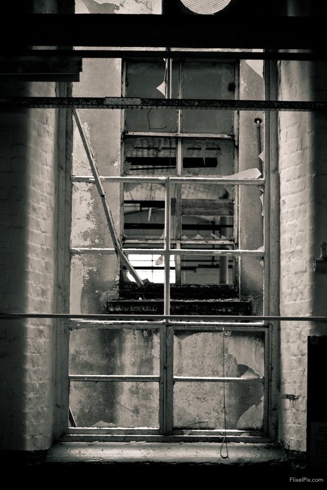 Finding windows in the Hilden Mill that hadn’t been broken was actually quite a challenge. There is obviously something attractive about breaking an old window that I just don’t get or perhaps the breakages are caused by nature growing through the frames putting pressure on the ageing panes.