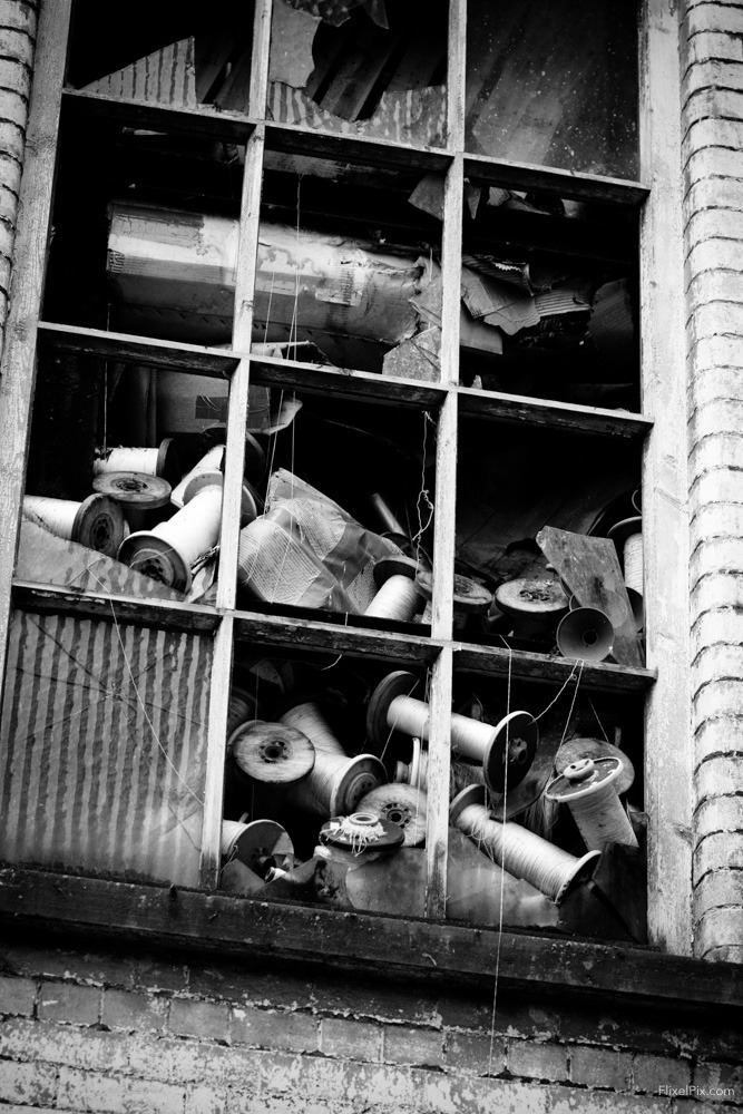 I expected a completely clear site void of any evidence it was a working mill yet racks of thread, spools, and gears still litter the large factory floors.
