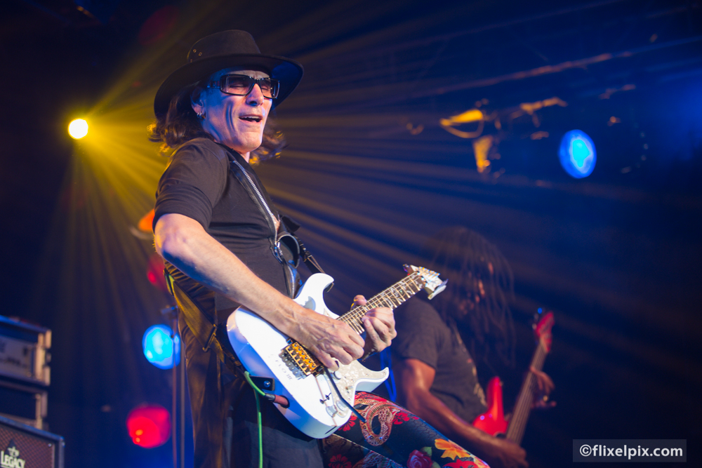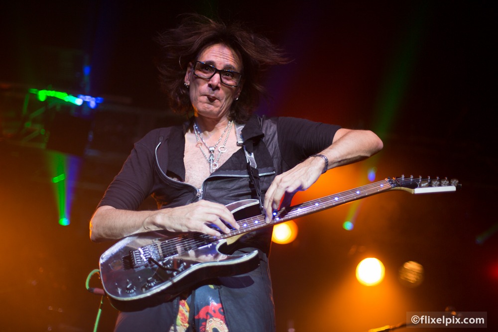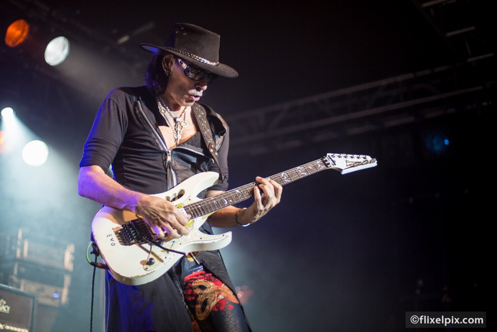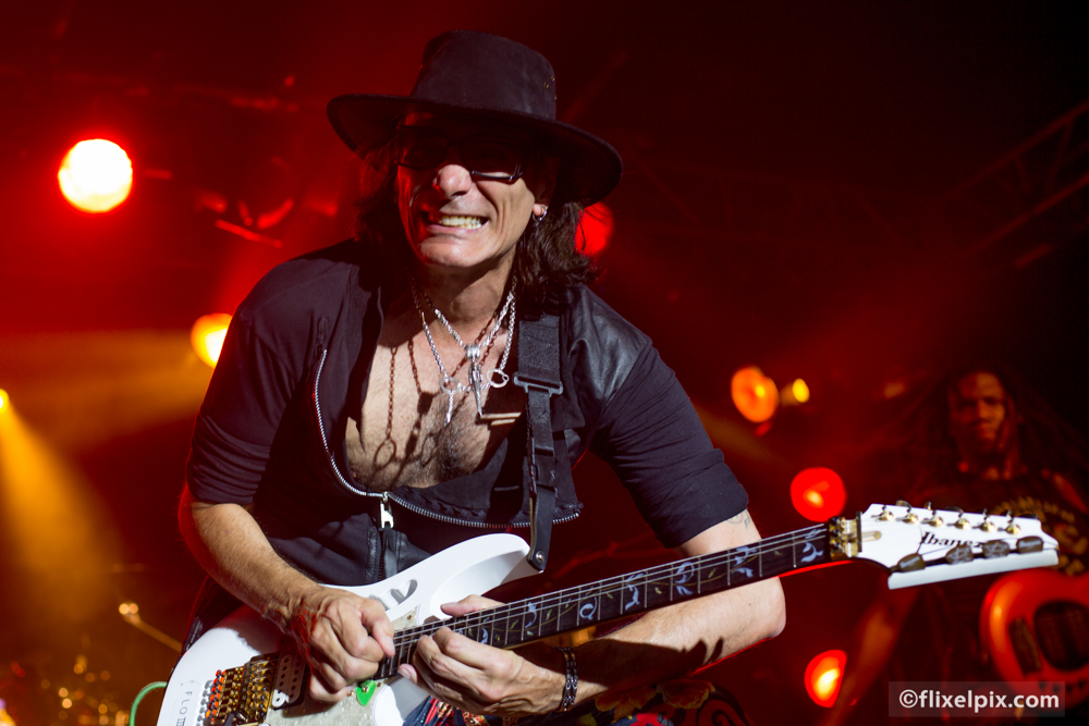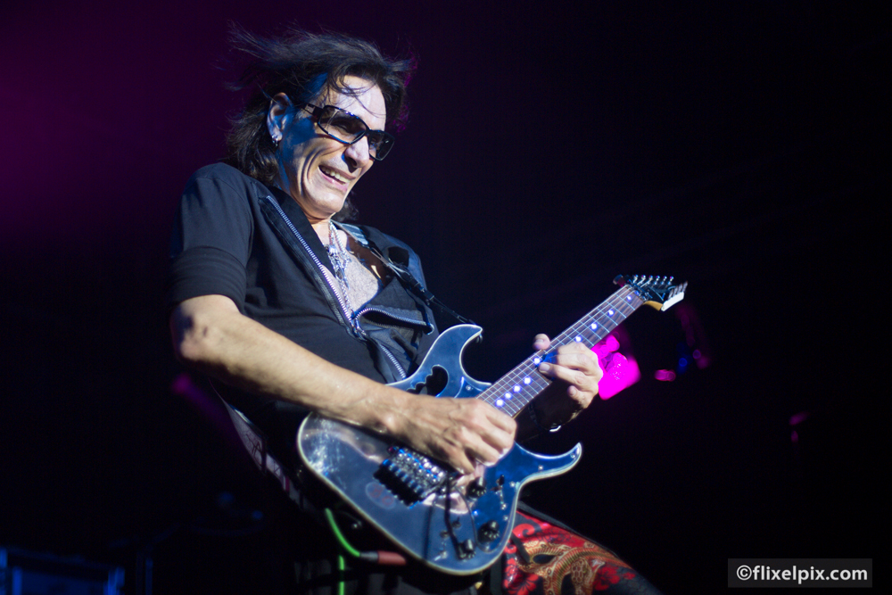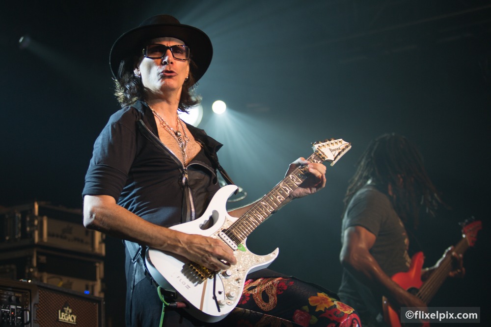 Northern Ireland in the 80s and early 90s was often avoided as a destination by most bands and artists. Some ventured as far as Dublin but few ventured across the border. It is refreshing now that many of the artists I missed out on seeing in the 80s are venturing their way to Belfast and most comment on how stunning place it actually is. In the same way that Steve Vai followed Vivian Campbell in Whitesnake he does the same on the pages of flixelpix. I first came across the guitar legend Steve Vai when he played the role of Jack Butler in the 1986 film Crossroads. Steve Vai toured with David lee Roth and Whitesnake and although he had previously performed in Dublin this was Steve’s first ever gig in Belfast. I have been an avid fan of Vai’s guitar style from the David Lee Roth albums, his playing is something to aspire to but it is a level out of reach to the majority of players. Despite having played with a number of bands it is Steve’s eight solo albums and three Grammy Awards that define him as a musician dedicated to his craft. There was no support act at the Steve Vai Story of Light gig instead Steve performs a complete three hour, high energy set. The Story of Light was a truly amazing event, my claim to fame is that I’ve been hit by one of Steve’s flying guitar picks which I passed to a fan in the front row who I hope Steve was aiming at. In the same way I noted that guitar playing was clearly effortless to Vivian Campbell it was clearly even less of an effort to Steve Vai. I used to be in awe of the fact that Steve Vai received guitar lessons from the great Joe Satriani but I suspect Steve wasn’t a difficult person to teach. Steve Vai performed in the Mandela Hall (Queen’s University of Belfast) which shook with every single note. The Story of Light tour continues in the UK and beyond and if you are even slightly interested in guitar it is a spectacular, must see event. You can see the full tour listing on the Vai.com website. Leave a Reply Cancel Reply Your email address will not be published. Name* Email* Website Comment