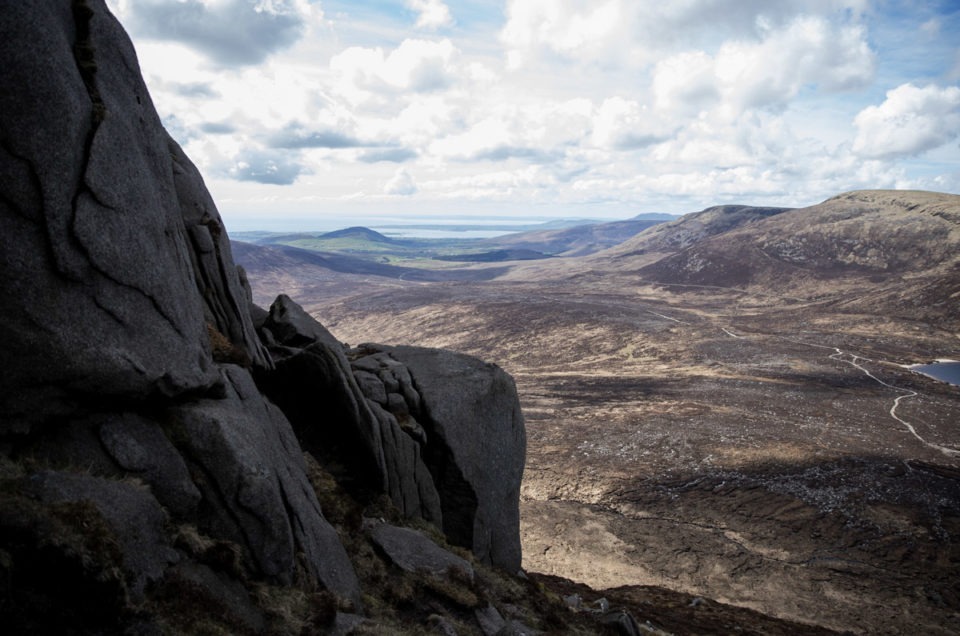 Stage two is a muddy, marsh laden trek from the wall to the foot of Doan Mountain. Dead ahead sits the stunning Slieve Bearnagh with its striking Tors. On this visit the route was beginning to dry out in the warm sun and I was keen to capture some of the views with the DJI Mavic Air. Note: there is no real path or track so the ability to navigate is essential should the weather suddenly change.